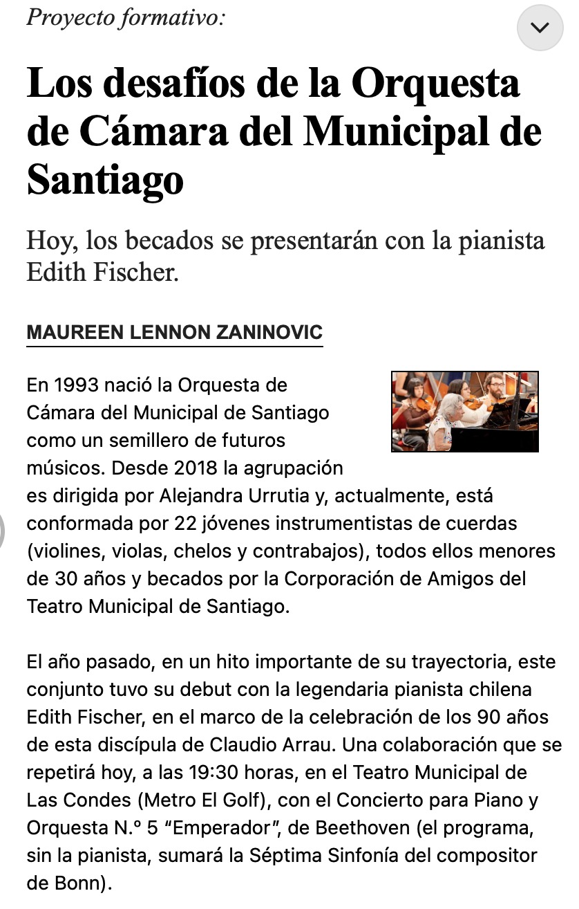14 Apr Los desafíos de la Orquesta de Cámara del Municipal de Santiago | El Mercurio Noticias 14/04/2026 Por: El Mercurio