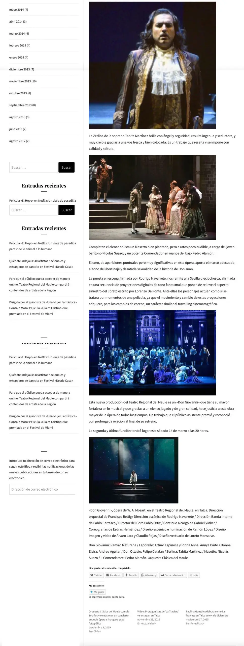 “La Zerlina de la soprano Tabita Martinez brilla con ángel y seguridad resulta ingenua y seductora y muy creíble Gracias a una voz fresca y bien colocada, es un trabajo que resalta y se impone con calidad y soltura.”